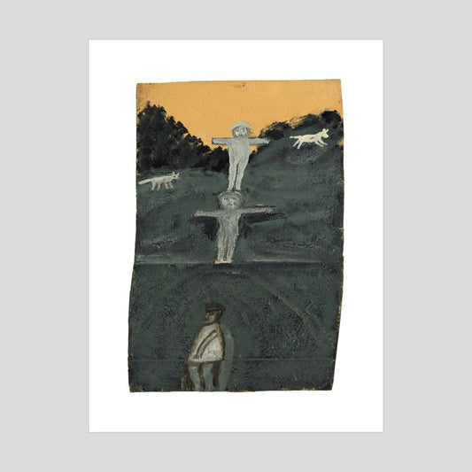 Alfred Wallis Crucifixion or Allegory with three figures and two dogs Print