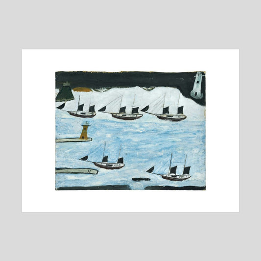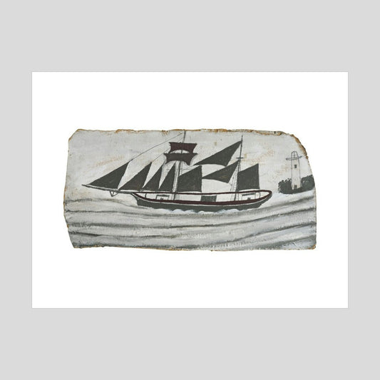 Alfred Wallis Schooner in full sail near a lighthouse Print