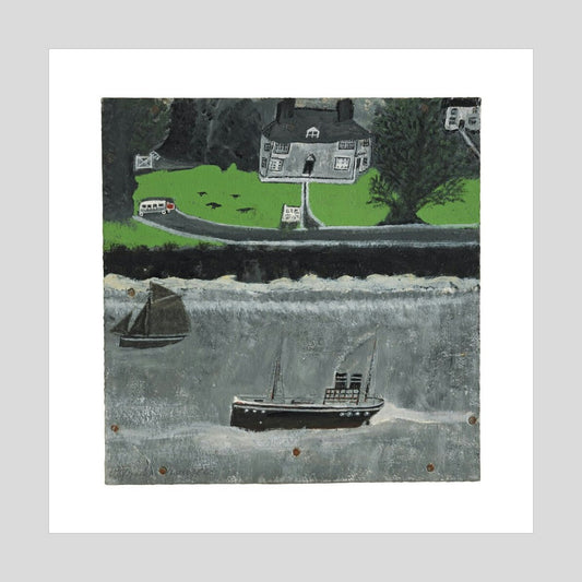 Alfred Wallis Two boats moving past a big house Print