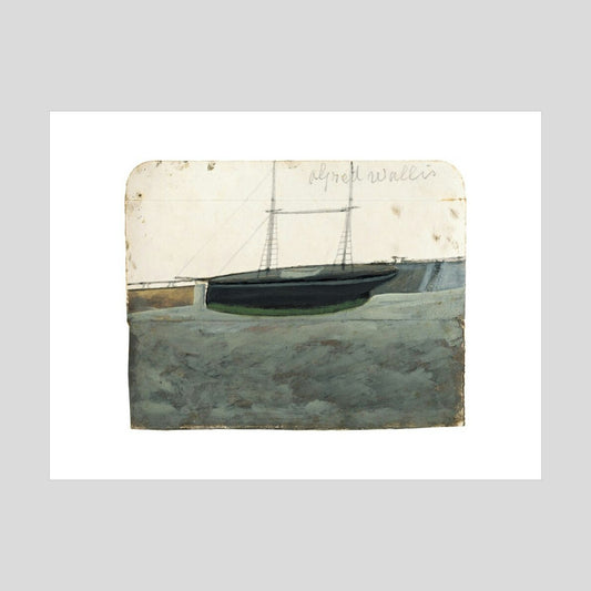 Alfred Wallis Two-master with green hull-line alongside quay Print
