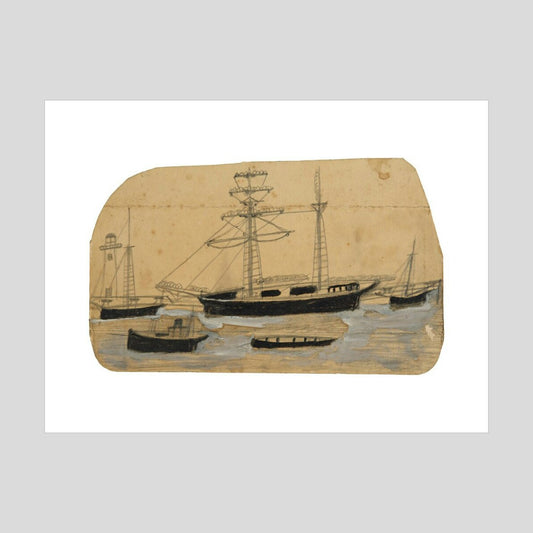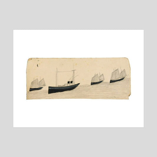 Alfred Wallis Two-funnel steamboat amongst three sailing boats Print