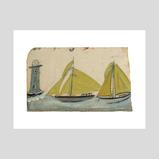 Alfred Wallis Two boats with yellow sails and lighthouse Print