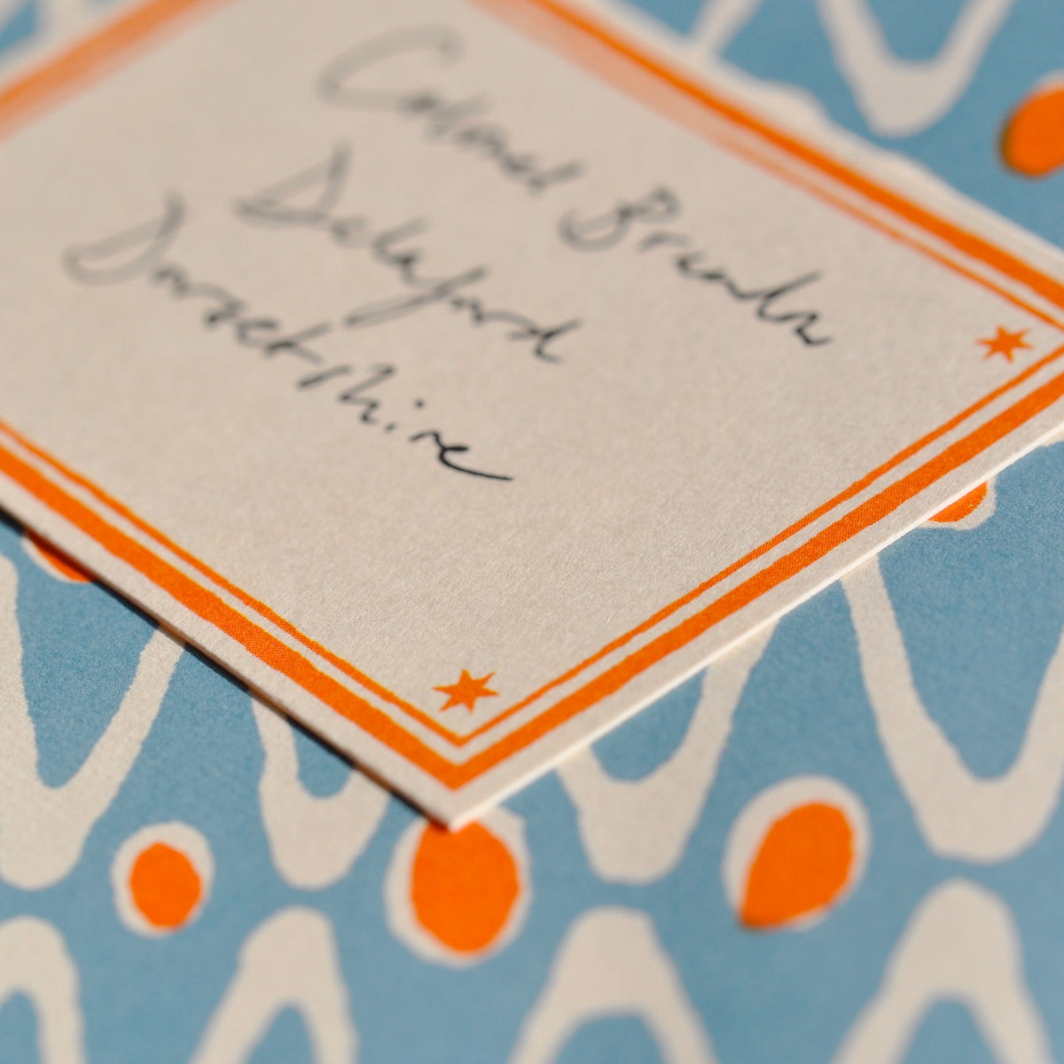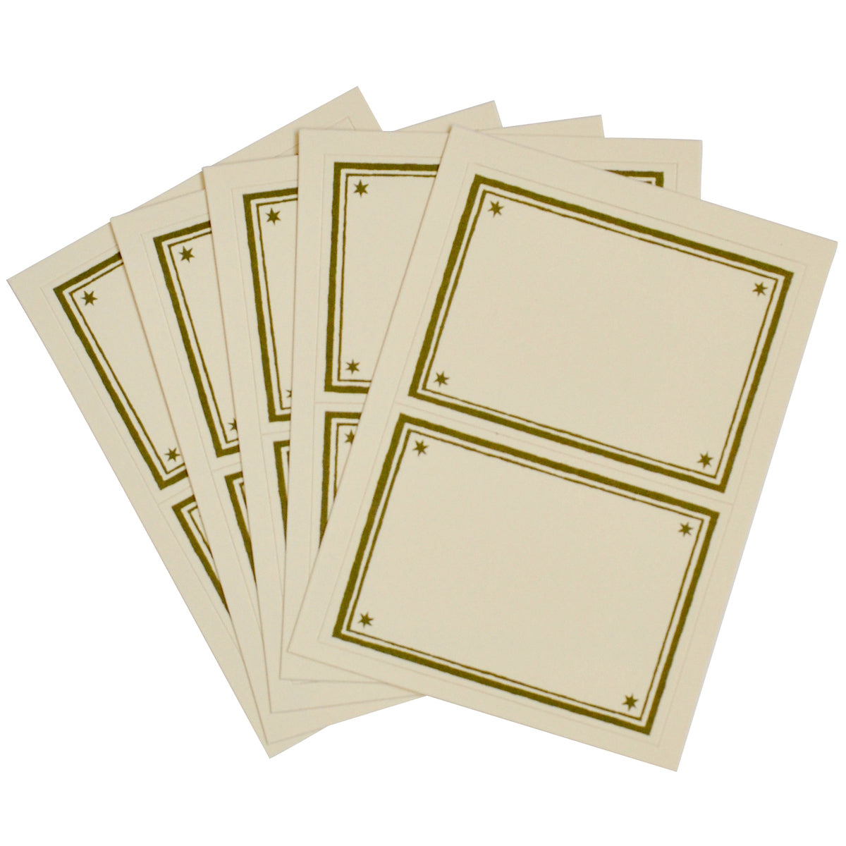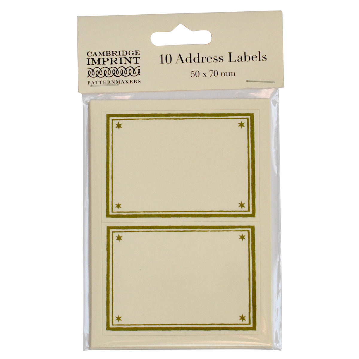 Pack of 10 Large Self-adhesive labels by Cambridge Imprint. Give a smart finish to a letter or gift wrap, or use to label sketchbooks, folders and photo albums. These robust matte ivory self-adhesive address labels each measure 80 x 56 mm, with a simple yet elegant patterned border in a selection of hand-mixed colours.