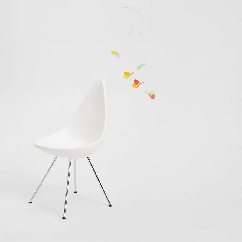 The mobile is a part of Flensted's 'Click-a-Mobile' series. This mobile is mounted on strings and pre-assembled with the hanger system – you just need to 'click' the single elements together, and the wings can be arranged in any colour...