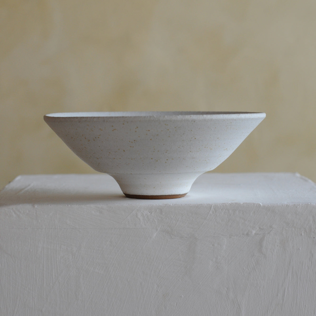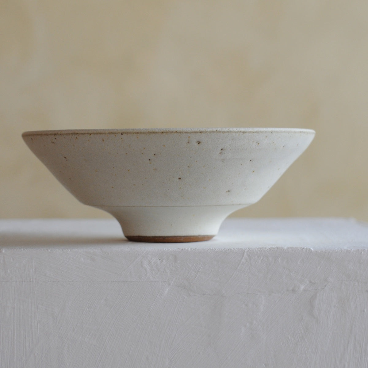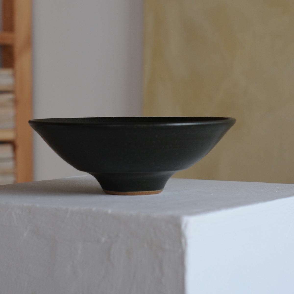 This hand-thrown low footed tea bowl by Mingyu Du is crafted from local stoneware clay and finished with a choice of three soft matt glazes. An elegant choice for rice, snacks or fruit, it also makes a striking display piece when combined with complimentary styles from Mingyu’s range.