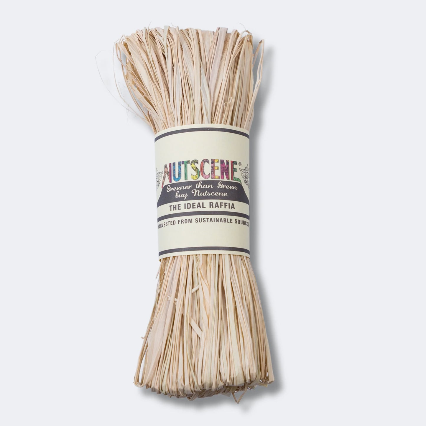 Raffia is made from the dried and shredded leaves of the Palmyra palm tree. It is harvested from renewable sources in Madagascar.