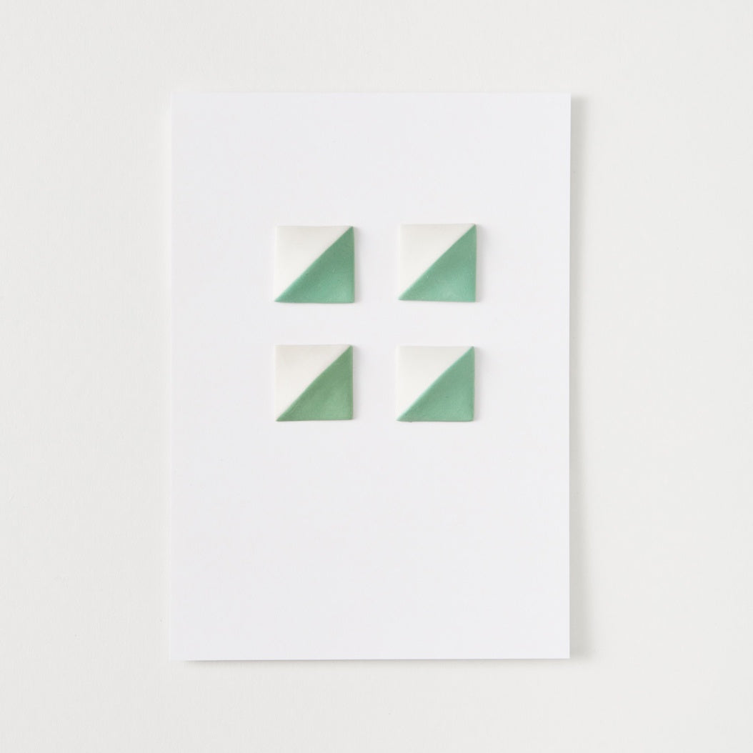 Revisiting these ideas in miniature form, Begum has created functional, wearable objects that have the appearance of small-scale sculptures. Individually handmade in a process involving over ten stages, the buttons are true to the medium of ceramics with every button becoming a unique work. Begum has arranged the buttons into different patterns so that each card takes on a special character of its own.